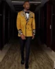 Veste à revers châle jaune pour hommes, 2 pièces, pantalon noir, Blazer brodé sur mesure, ensembles de costumes pour hommes, vêtements de fête de mariage