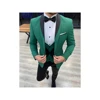 Costume vert avec col châle pour hommes, costume sur mesure avec bouton unique, mode décontractée, Blazer 3 pièces, slim, nouvelle collection 2022