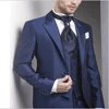Ensemble 5 pièces pour hommes, haut à revers, personnalisé, bleu marine, costume à la mode, Slim, (veste + gilet + pantalon + mouchoir), haute qualité, nouvelle collection 2021