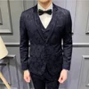 Costume de luxe brodé Jacquard pour hommes, ensemble de 4 pièces à revers échancré, veste + pantalon + gilet + nœud papillon, nouvelle collection 2021