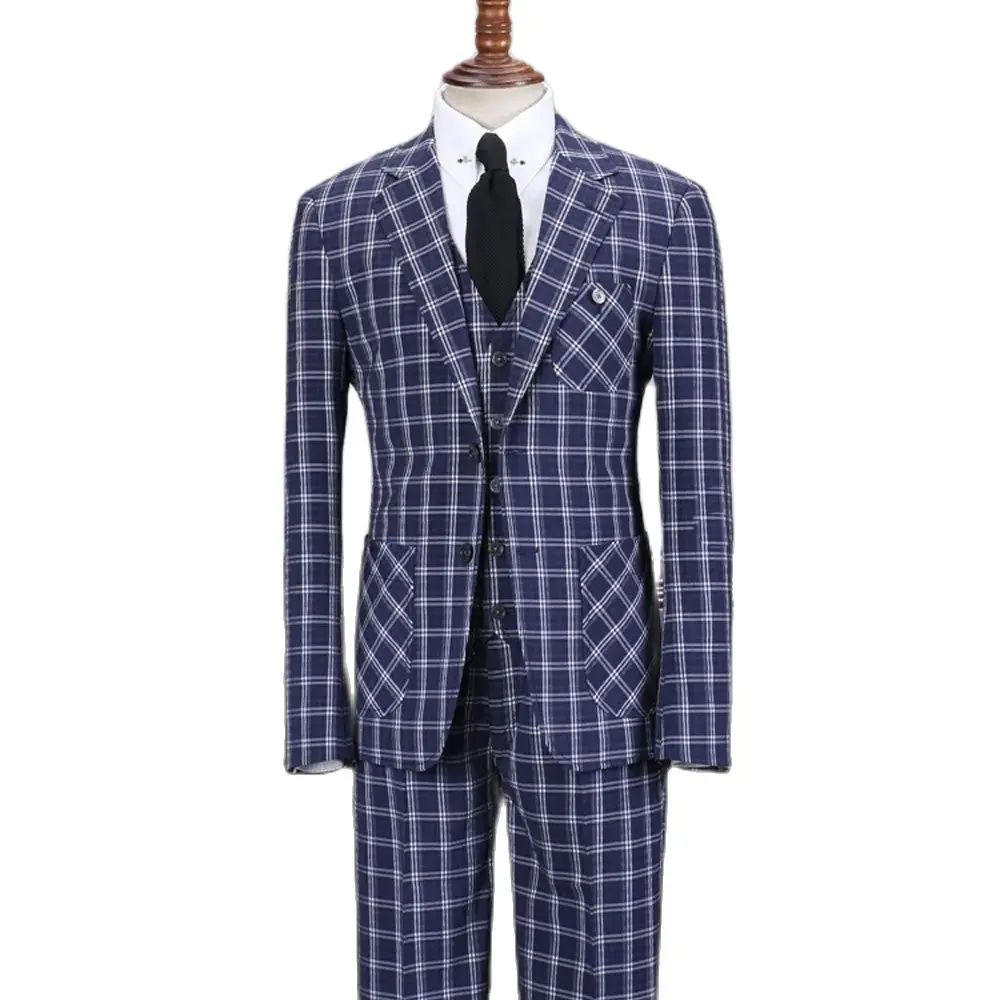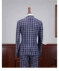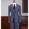 Ensemble de costume à carreaux bleu pour homme, Blazer crissé à revers, pantalon de soirée, Tuxedos sur mesure, veste + pantalon + gilet, 3 pièces