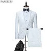 Costume 2 pièces blanc Floral pour hommes, Costume de fête de Mariage, Tuxedos de marié, Costume (veste + pantalon) pour Homme