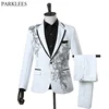 Costume 2 pièces blanc brodé à paillettes pour hommes, Blazer à un bouton, Costume 2 pièces (veste + pantalon), Costume de chanteur de scène