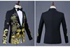 Costume de Luxe Noir Brodé Or pour Hommes, Tenue de Mariage, Smoking à Col Châle, Veste + Pantalon, Vêtements de Chanteur de Scène
