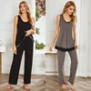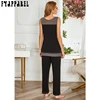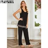 Pyjama deux pièces pour femmes, ensemble de vêtements d'hiver, haut en dentelle, couleur contrastée, épissure, nouvelle collection