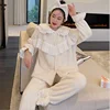 Pyjama en dentelle corail pour femmes, couleur pure, costume doux, épais, plus velours d'agneau, service à domicile, nouveau style, vêtements de nuit, hiver