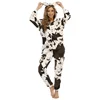Pyjama Double face en molleton épaissi pour femmes, combinaison à oreilles de vache, vêtements de maison pour adolescentes