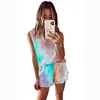 QWEEK – costume d'été pour femmes, avec short, pyjama de couleur dégradée, sans manches, à la mode, vêtements de nuit