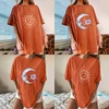 T shirt manches courtes col rond femme, Streetwear, décontracté, Vintage, imprimé lune