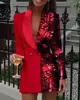 Robe de bureau à manches longues pour femmes, tenue de bureau, Patchwork de couleurs, col en V, paillettes, Double boutonnage, 2020