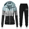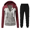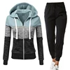 Survêtement pour femme, ensemble 2 pièces, veste, sweat à capuche et pantalon, fermeture éclair, Patchwork, vêtements de sport, automne et hiver