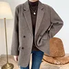 Blazer en laine pour femme, veste épaisse, surdimensionnée, rétro, à rayures, Double boutonnage, manches longues, ample, collection automne hiver 2021