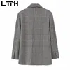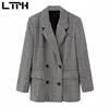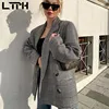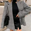LTPH – blazer mi long à manches longues pour femme, vêtement épais, style vintage, pied de poule, avec poches, décontracté, nouvelle collection hiver 2020