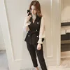 Costume trois pièces pour femmes, ceinture de bureau, solide, Double boutonnage, cranté, longueur cheville, grande taille, Slim, pantalon Harem, High Street