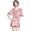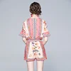 Ensemble court 2 pièces pour femmes, décontracté, Short, régulier, taille élastique, col en v, volants, Slim, imprimé, manches évasées, pétales, été 2021