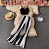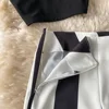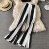 Ensemble 2 pièces pour femmes, gilet court décontracté, dos nu, Patchwork, pantalon à jambes larges, Style jeune, pull en vinyle, col en v, taille haute, été