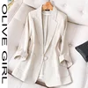 Veste de costume professionnelle coréenne OL, ample et décontractée, grande taille, en coton et lin, Section mince, pour femmes, printemps et été, 2021