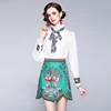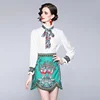 Robe en mousseline de soie pour femmes, grande taille, vêtements élégants, manches longues, bureau, impression trapèze, col rond, décontracté, nouvelle collection été 2021