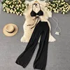 Ensemble de 2 pièces en coton mélangé pour femmes, tenue sans manches, court, haut, rue, solide, tricot, Sexy, décontracté, pantalon ample, blanc indien