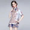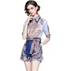 Ensemble chemise à manches courtes et pantalon taille haute, avec nœud papillon, pour restaurer les anciennes façons de filmer la tache, impression bleue