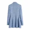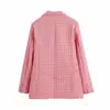 Blazer à carreaux Double boutonnage pour femme, costume coupe vent parfumé, veste à col crissé, vêtements d'extérieur à manches longues, automne