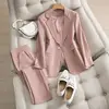 Costume 2 pièces, grande taille, blazer, pantalon, pour femmes, nouveau Style coréen, pantalon élégant, bureau, Slim, printemps automne, 2021