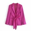 Blazer doux au toucher avec nœud pour femmes, manteau Vintage à manches longues, poches passepoilées, vêtements d'extérieur Chic, Veste, pantalon féminin, 2021