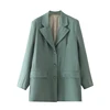 Blazer à manches longues pour femmes, veste ample, simple boutonnage, manteau Vintage, bureau, décontracté, vêtements d'extérieur, vert, 2021