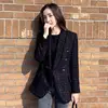 Manteau Blazer en laine Tweed pour femme, veste Double boutonnage élégante en laine mélangée noire, nouvelle mode printemps automne