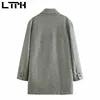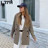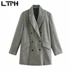 LTPH – blazer vintage à carreaux pour femme, double boutonnage, mi long, en laine, tweed, style business décontracté, costume, manteau, nouvelle collection automne 2021
