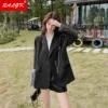 Veste Blazer ample pour femme, vêtement décontracté, couleur unie, mode coréenne, printemps et automne, 2021