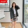 Veste de haute qualité pour femmes, nouvelle collection automne 2021, couleur unie, ample, costume décontracté, haut court, tempérament, vêtements élégants et élégants