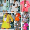 Costume deux pièces pour femme, veste, cardigan, manches longues, short, couleur unie, décontracté, automne