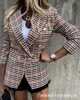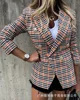 Manteau de costume à carreaux pour femme, vêtement de bureau, à revers, décontracté, nouvelle collection automne hiver 2021