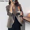 Sister Fara – Blazer à carreaux pour femmes, ample, cranté, à bouton unique, manteau pour dames, élégant, décontracté, printemps automne