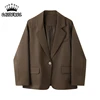 Manteau de Blazer pour femmes, mode coréenne, sens du Design, bouton unique, Baggy, bureau, vestes noires, vêtements d'extérieur