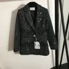 Haut de costume polyvalent pour femmes, design de luxe, paillettes, broderie, tweed, manteau à manches longues, bouton diamant, tempérament, à la mode, 2021