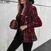 OLOME – veste à carreaux pour femmes, veste à manches longues, bouton, mode, bureau professionnel, travail, costume, grande taille, automne et hiver