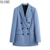 OLOM – Blazer croisé à manches longues pour femmes, costume Vintage élégant, col crissé, vêtements de bureau, vêtements d'extérieur