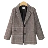Blazer simple boutonnage pour femme, veste à carreaux, col cranté, poches décontractées, costume féminin, manteau, automne hiver 2021