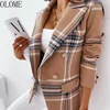 OLOME – Blazer à carreaux pour femme, veste à manches longues, décontracté, Slim, mince, kaki, manteau de bureau élégant, printemps automne