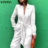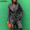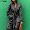 VONDA – manteau décontracté pour femme, Blazer de costume plissé à manches longues avec poches, ample, à nouer, 3 couleurs, collection automne 2021