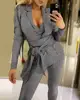 Ensemble pantalon et Blazer imprimé pied de poule pour femme, 3 pièces, haut et pantalon moulant, collection automne 2021