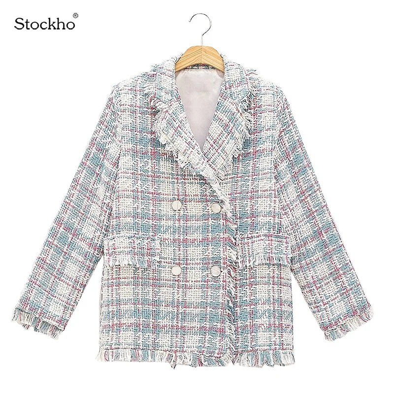 Veste une pièce en tissu de laine, Style dame, manteau en tissu de laine, mode Plaid, costume pipi, nouveau haut décontracté, printemps automne, 2021