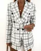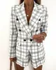 Blazer double col à carreaux à manches longues, boutonnage croisé à revers, en stock, nouvelle collection 2021