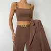 Ensemble deux pièces pour femme, élégant, débardeur + pantalon taille haute, mode, couleur unie, tenue de bureau, automne 2021