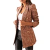 TBYL femmes mode Tweed Double boutonnage Blazer manteau Vintage col cranté à manches longues poches à rabat vêtements d'extérieur pour femmes Chic Veste