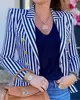 Costume pour femmes, manteau de bureau pour dame, boutons, Design, imprimé rayé, manches longues, Blazer, automne 2021