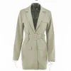Blazer à manches longues et col en V profond pour femme, avec ceinture enveloppante, costume, automne, printemps, noël, mode élégante, bureau, veste pour femme