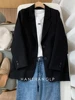 Blazer à manches longues pour femme, couleur unie, bleu, noir, mode coréenne, tendance, 2021